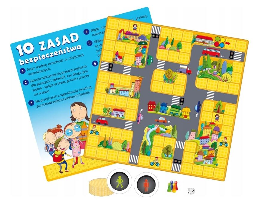 Troską każdego rodzica jest bezpieczeństwo dziecka podczas drogi do i ze szkoły. „Bezpieczna droga” to gra, która uczy dziecko podstawowych zasad przechodzenia przez jezdnię. W trakcie rozgrywki można też porozmawiać o niebezpiecznych sytuacjach, które mogą zdarzyć się na drodze i przekazać cenne wskazówki. Pomogą w tym zasady bezpieczeństwa opisane na drugiej stronie planszy.