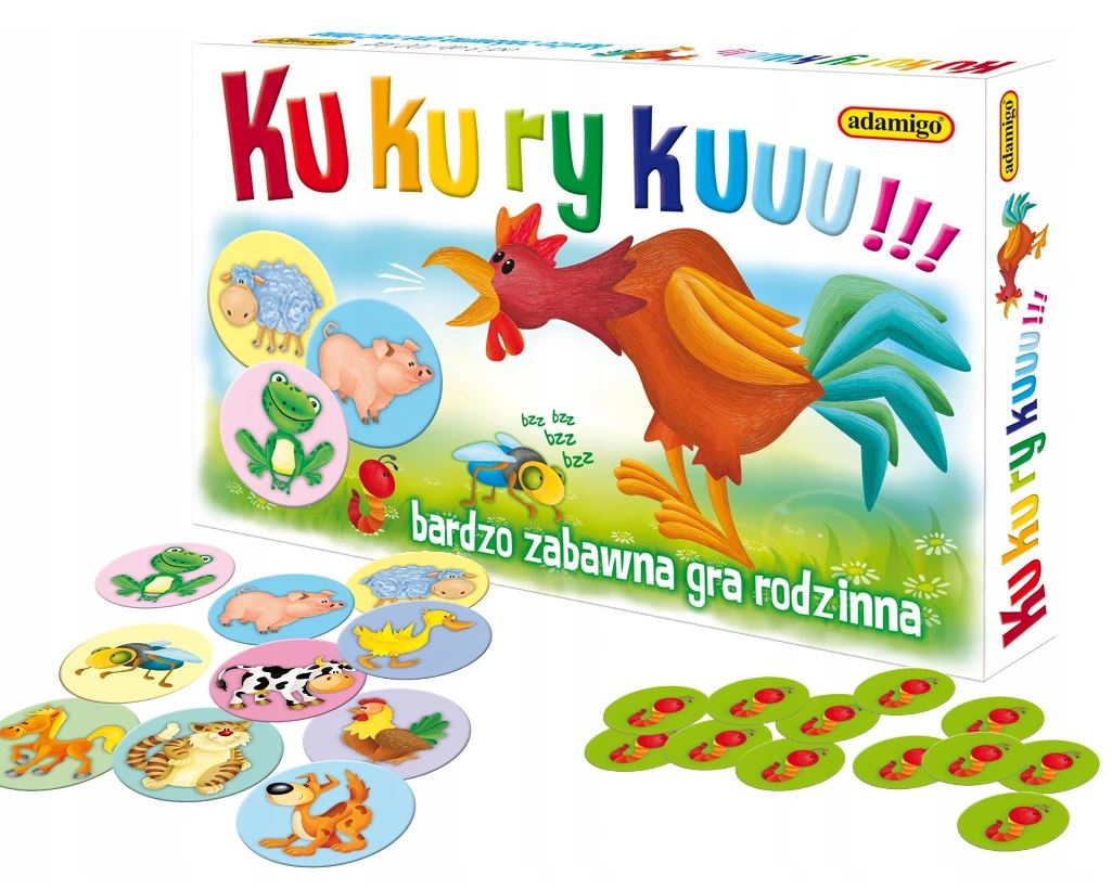 Proste zasady, komiczne sytuacje, wynikające z konieczności naśladowania zwierzęcych głosów, możliwość wspólnej zabawy maluchów z dorosłymi, to atuty tej gry. Potrzebne do niej będą: świetny refleks, spostrzegawczość i dobry... głos. Daje to gwarancję zgromadzenia największej liczby żetonów z robaczkami - przysmakiem koguta..., który jest jokerem w tej grze.