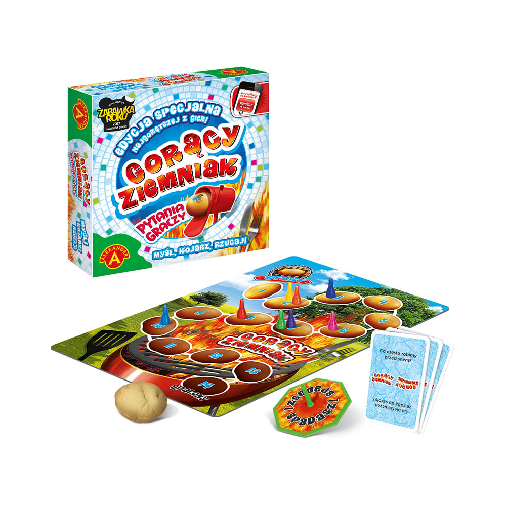 Myśl, kojarz, rzucaj i pozbądź się Gorącego Ziemniaka zanim się sparzysz! Przezabawna gra rodzinna, sprawdzająca refleks. Pozornie proste pytania, na które odpowiedzi pod presją czasu przestają być już tak oczywiste, a swoboda skojarzeń i pomysłowość sprawiają, że rozgrywce towarzysza salwy śmiechu.