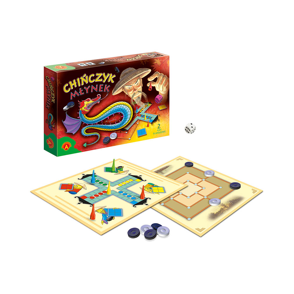 Zestaw dwóch klasycznych gier planszowych. „Chińczyk” to wspaniała gra losowa, w której strategia odgrywa drugorzędną rolę. Ta gra zapewni świetną zabawę zarówno dla najmłodszych jak i dla dorosłych.