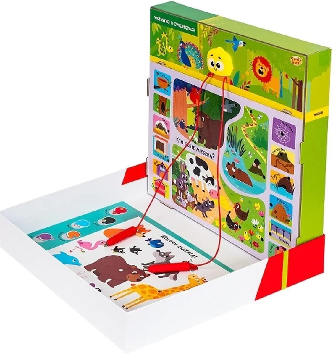Quiz elektryczny "Wszystko o Zwierzętach" od Smily Play to zestaw różnorodnych pytań, które pomogą dzieciom zgłębić fascynujący świat zwierząt. Dzięki temu quizowi maluchy będą mogły: