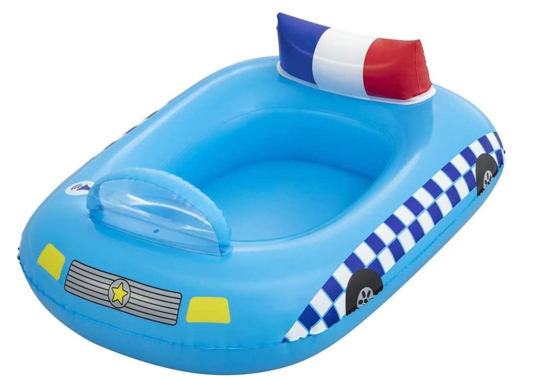 Dmuchana łódka z motywem radiowozu policyjnego dla dzieci to doskonałe miejsce do zabawy dla najmłodszych! Dodatkowo posiada głośnik, który tworzy dźwięk syreny policyjnej! Bateria w łódce jest o długotrwałej mocy dzięki czemu starczy na godziny spędzone w wodzie. Wykonana z wysokiej jakości winylu jest odporna na uszkodzenia.