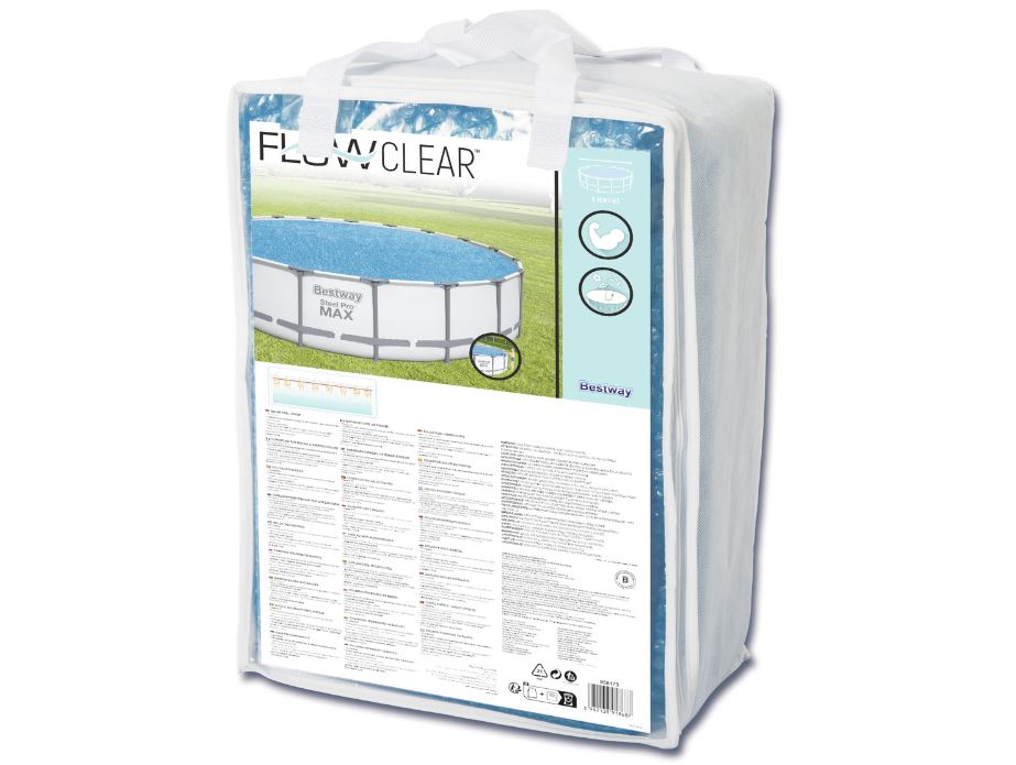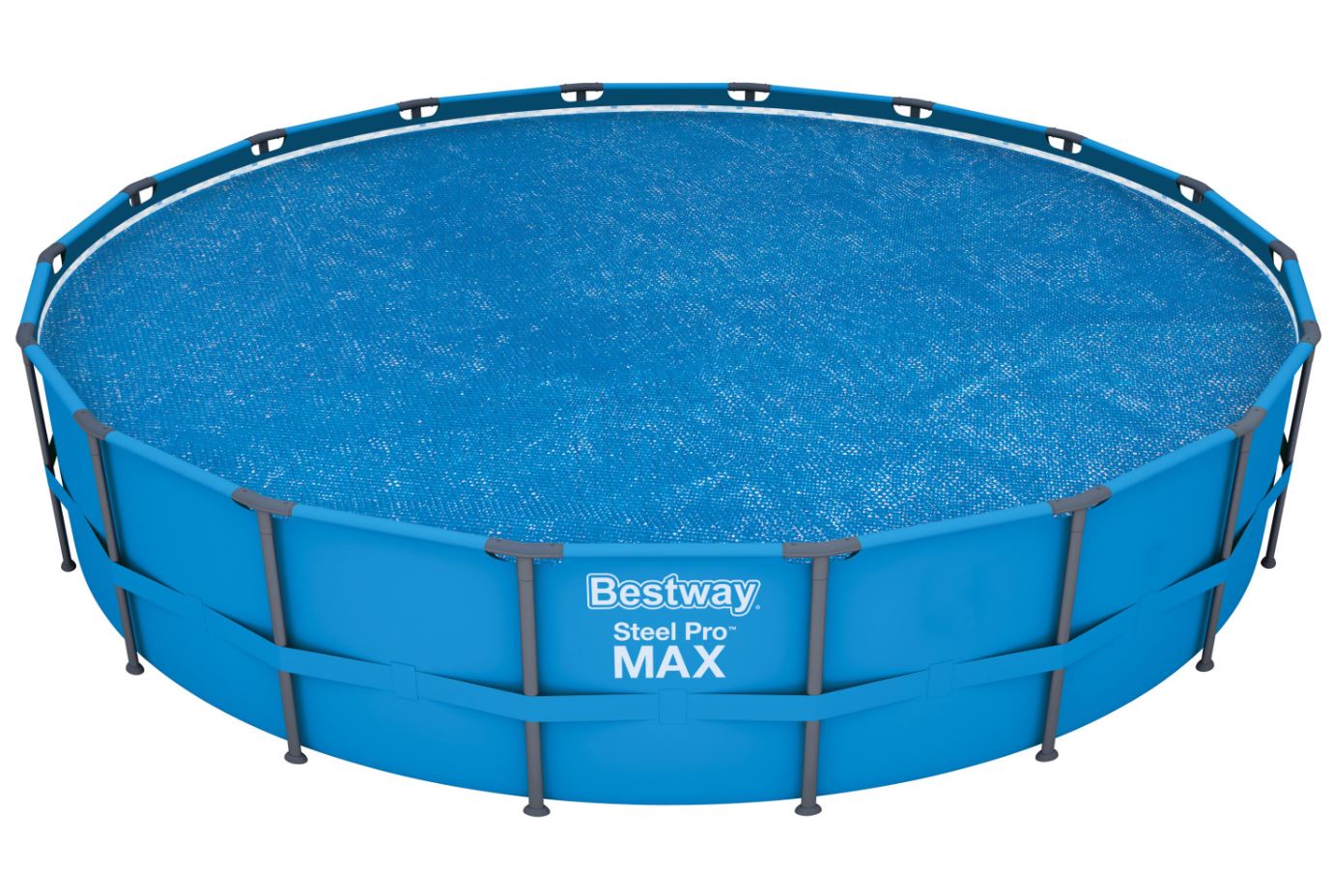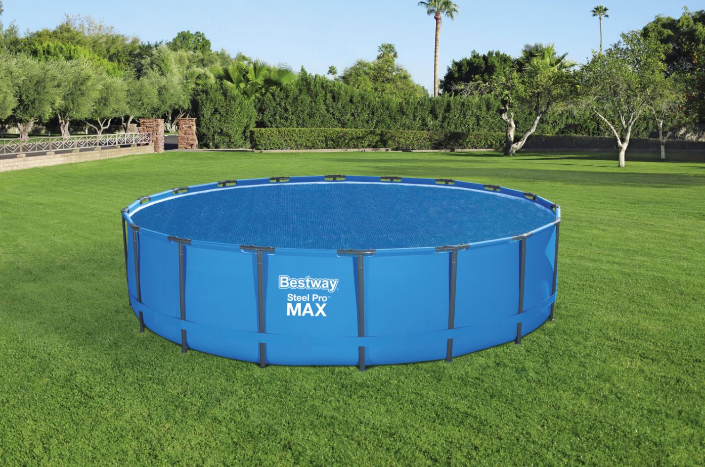 Solarna pokrywa do basenów firmy Bestway to idealny produkt dla osób, które nie lubią kąpać się w chłodnej wodzie. Pokrywa wykorzystuje energię słoneczną do podgrzewania wody w basenie i zapobiega ucieczce ciepła. Dodatkowo minimalizuje przedostawanie się zanieczyszczeń. Pasuje do basenów 5,49m Steel Pro MAX; 5,49m Power Steel oraz 5,49m Power Steel Swim Vista Series.