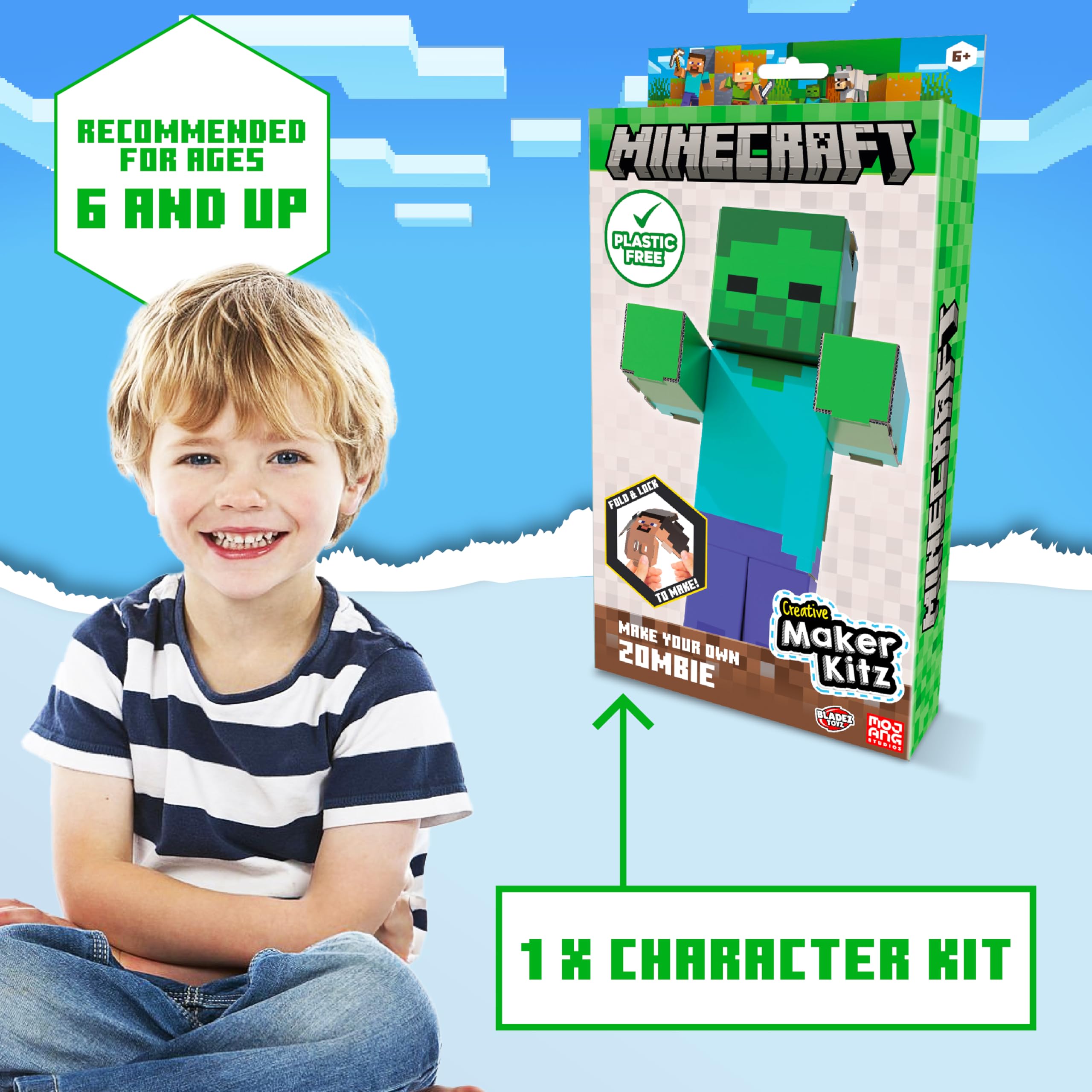 Ten zestaw pozwoli w łatwy sposób zrobić figurkę Zombie z gry Minecraft. Wystarczy poskładać tekturowe części, nie trzeba do tego kleju czy nożyczek! Po złożeniu otrzymamy figurkę mierząca aż 25cm, która dodatkowo może poruszać ramionami w górę i w dół. Kartonowa postać świetnie sprawdzi się w zabawie, ale może też stać się ozdobą dziecięcego pokoju.