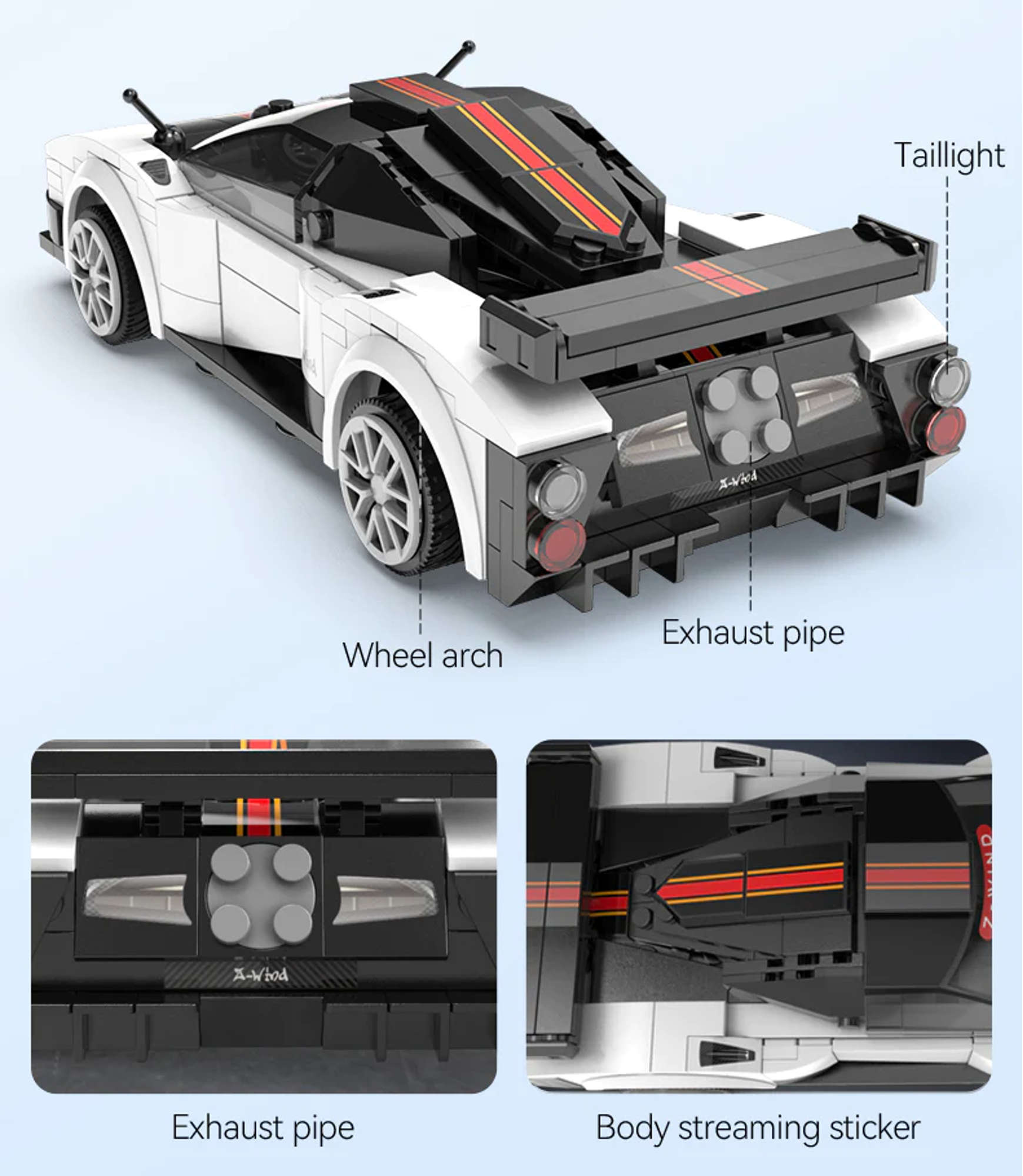 Sportowy samochód Z-Wind został zaprojektowany ze szczególną uwagą na detale, co zapewnia niesamowitą zabawę i satysfakcję z tworzenia. Model wyróżnia się biało-czarną karoserią z czerwonymi elementami oraz ozdobnymi detalami, takimi jak nadkola, rura wydechowa, felgi i ozdobne naklejki. Samochód jest stworzony w skali 1:14, co czyni go imponującym dodatkiem do każdej kolekcji.