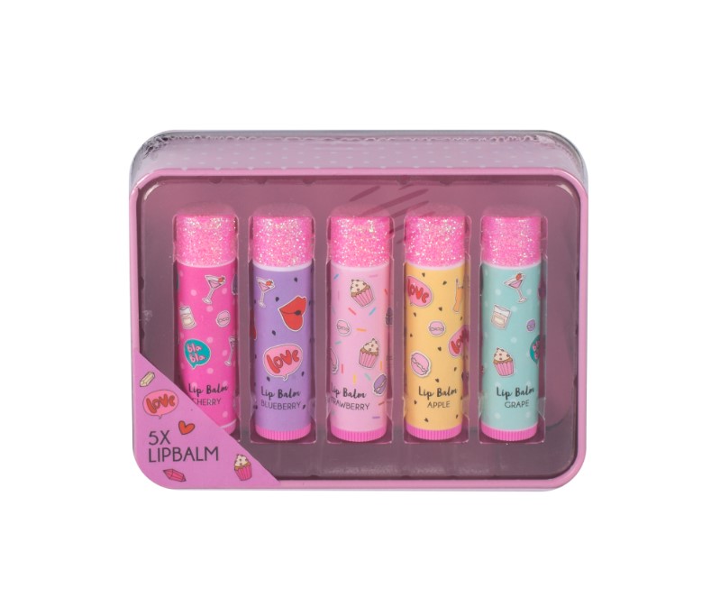 Create it! zestaw balsamów do ust w puszce to słodkie i aromatyczne pomadki do ust w uroczym różowym etui w kropki. Blaszane etui ma dodatkowe miejsce na inne produkty do makijażu, dzięki czemu możesz przechowywać jeszcze więcej przedmiotów.