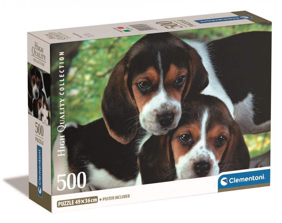 Puzzle Compact składające się z 500 elementów to prawdziwe wyzwanie dla każdego dużego i małego miłośnika układania. Układanie puzzli to rozwijająca aktywność, która wycisza oraz wymaga cierpliwości, koncentracji i wytrwałości. Uczy najmłodszych spostrzegawczości oraz rozwija ich zdolności manualne i umiejętność logicznego myślenia.Po ułożeniu układanki powstanie obrazek o wymiarach 49x36cm, przedstawiający pieski rasy beagle.