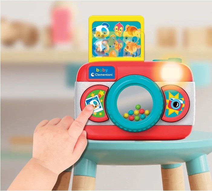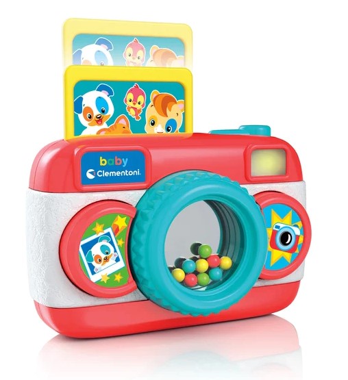 Przeznaczony dla najmłodszych aparat fotograficzny wyróżnia się wyszukanym wzornictwem i kolorami, które wpadają maluchom w oko. Produkt jest nie tylko stylizowany na aparat, może służyć jako radyjko odtwarzające odgłosy zwierząt oraz przyjemne melodie, które zmieniają się po każdym naciśnięciu. Umieszczone na aparacie przyciski służą do włączania dźwięków i melodyjek. Wciąż zmieniające się bodźce zachęcają malucha do zajmującej i interaktywnej zabawy.