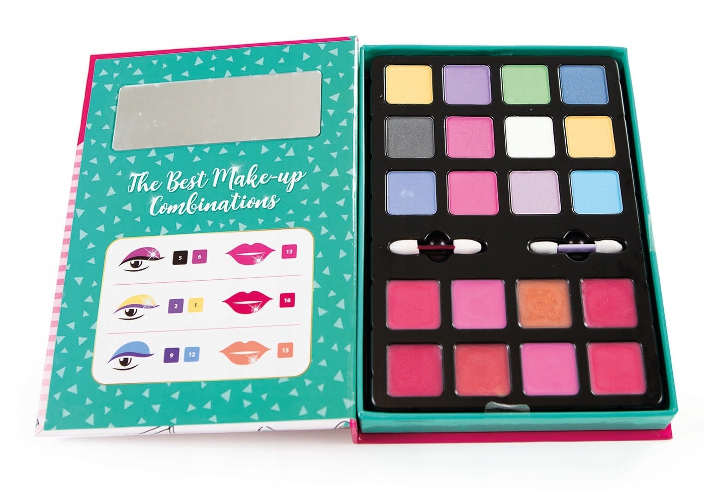 Kosmetyczka zawiera cienie do powiek, błyszczyk do ust i 2 pędzelki, aby bawić się makijażem, jak prawdziwa mistrzyni!