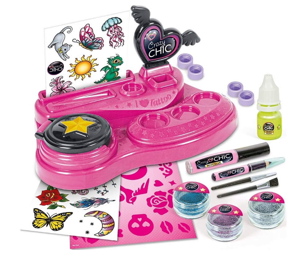 Czy jesteś prawdziwym entuzjastą tatuaży i szukasz nowego, ekscytującego sposobu na wyrażenie siebie? Daj się ponieść wyobraźni i kreatywności dzięki temu wyjątkowemu laboratorium artystycznemu. Zestaw zawiera wszystko, czego potrzebujesz, w tym tymczasowe tatuaże, klej do ciała, szablony naklejek, kolorowy brokat, świecącą w ciemności farbę do ciała i wiele więcej. Korzystając z aplikacji Crazy Tattoo, tatuaże te w magiczny sposób staną się trójwymiarowe. Następnie możesz je sfotografować i spersonalizować według własnych upodobań, zanim podzielisz się nimi ze znajomymi w mediach społecznościowych. Przygotuj się na przeniesienie swojego stylu na wyższy poziom dzięki Crazy Chic Crazy Tattoos!