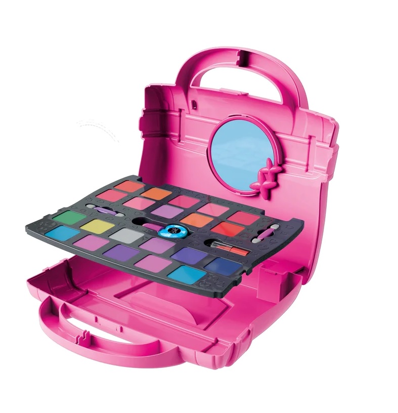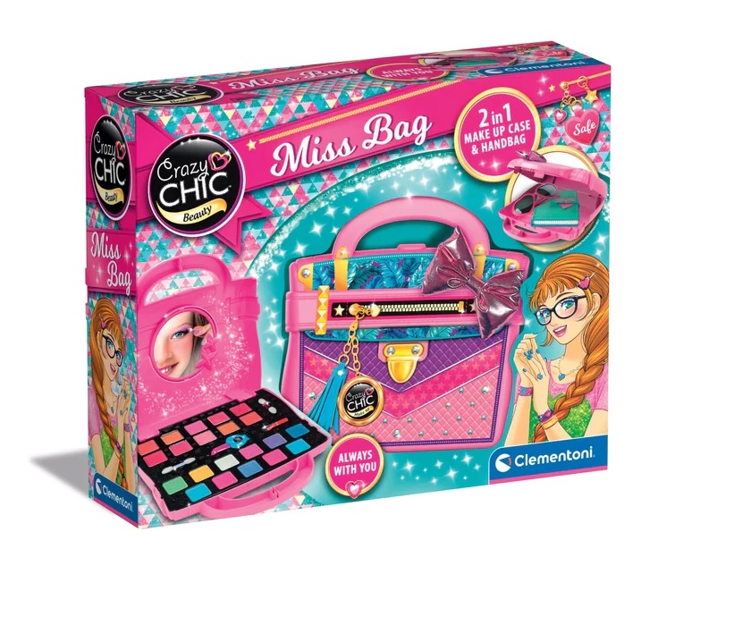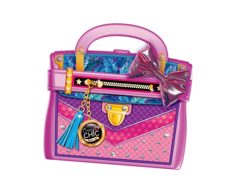 Modna torebka, która skrywa sekret urody każdej Crazy Girl! Mnóstwo kosmetyków, aby dobrze się bawić i stworzyć idealny makijaż na każdą okazję. Ta wyjątkowa torebka wyróżnia się przyciągającym wzrok designem, prawdziwie elegancką fakturą i śliczną kokardą z tkaniny super glam! Dziewczynki mogą wypróbować wiele różnych makijaży dzięki bogatemu wyposażeniu: 9 błyszczyków do ust, 11 cieni do powiek, 1 szminka, 1 lakier do paznokci i 2 aplikatory. Praktyczne, wyjmowane lusterko można nosić przy sobie, aby w każdej chwili móc sprawdzić makijaż. Zabawka pobudzająca kreatywność dziewczynek na polu kosmetyki przy zachowaniu pełni bezpieczeństwa.
