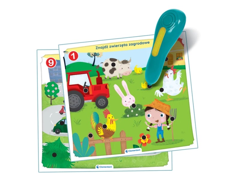 Zabawna gra quizowa przeznaczona dla dzieci od 3 roku życia. Program edukacyjny dostosowano do potrzeb najmłodszych dzieci i wsparto ilustracjami, które mają pomóc im w nauce kształtów i kolorów oraz orientacji w przestrzeni. Stymuluje rozwój umiejętności logicznych, zmysł obserwacji i zdolność kojarzenia. Ergonomiczne i interaktywne mówiące pióro pomaga dziecku odkryć poprawną odpowiedź. Mnóstwo kart do gry, wykonanych z solidnego kartonu powlekanego tworzywem sztucznym, z 24 zabawnymi zadaniami.