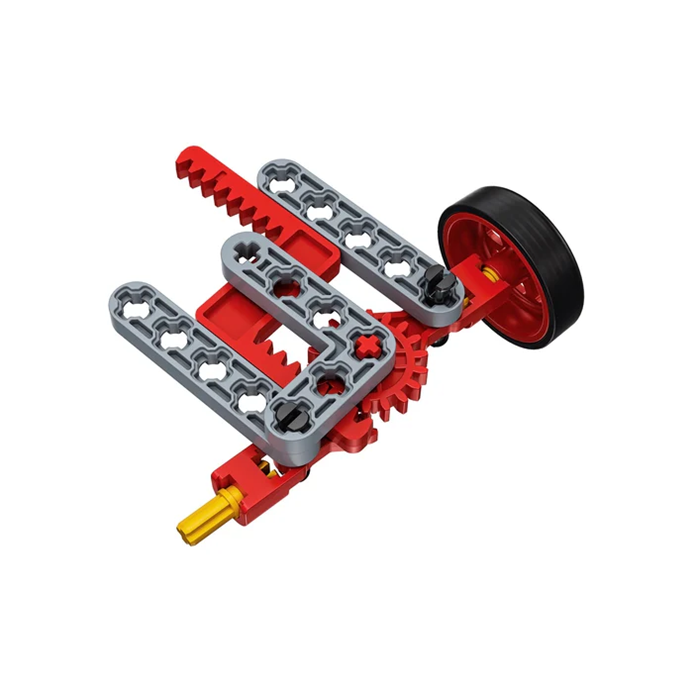 Złożony model ma otwierane drzwi, przekładnie zębate tworzące działający układ kierowniczy oraz elementy odtwarzające ruch naprzemienny tłoków.