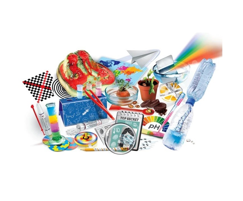 Zawiera wszystko to, co potrzebne do przeprowadzania eksperymentów i zbliżenia się do świata chemii, fizyki, botaniki i optyki w łatwy, zabawny i wciągający sposób.
