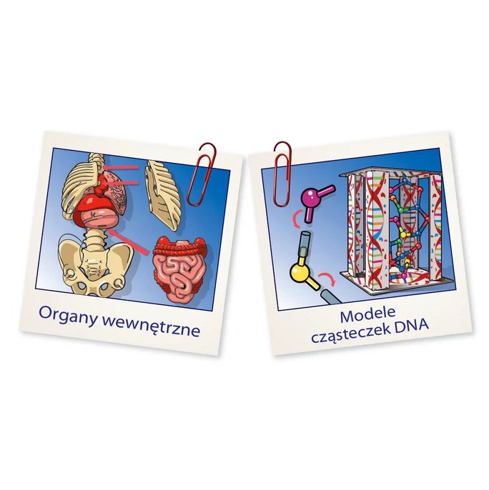 Wszystko dzięki prostemu modelowi DNA i szkieletowi ludzkiego ciała w 3D. Wszystko to wzbogacone zostało ilustrowaną, ciekawą instrukcją, która odpowie na wiele pytań ciekawskiego dziecka.