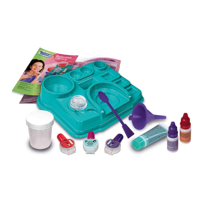 Odkryj fascynujący świat zdobienia paznokci z zestawem Naukowa Zabawa Kolorowe Lakiery. Stworzony dla dzieci powyżej 8 lat, ten kreatywny zestaw umożliwia wesołe i twórcze odkrywanie tajników pielęgnacji oraz zdobienia paznokci.