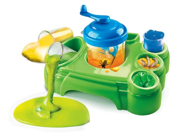 Labolatorium Slime z serii Naukowa Zabawa marki Clementoni przedstawia najbardziej zaskakującą stronę chemii w bogatym laboratorium naukowym. Za jego pomocą dziecko może stworzyć niesamowite, lepkie ciecze slime. Podstawka pomieści kilka pojemników oraz dołączony do zestawu mikser, który umożliwia łatwe łączenie ze sobą rozmaitych składników dla uzyskania płynów o zaskakujących konsystencjach. Barwniki i brokat sprawią, że stworzony slime będzie jeszcze bardziej oryginalny i zabawny. Umieszczone w zestawie masy żelowe są nietoksyczne i całkowicie bezpieczne dla dzieci.