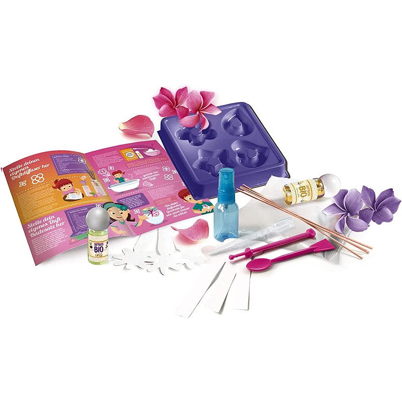 Co można zrobić w laboratorium zapachów? Zestaw zawiera wszystko, co niezbędne do doświadczeń z kosmetyką i do własnoręcznego tworzenia perfum i pachnących ozdób; Aromaty o certyfikowanym pochodzeniu;