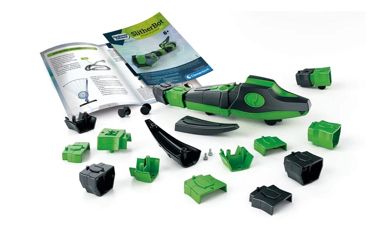 Poruszający się robot do samodzielnego złożenia, pochodzący z serii Naukowa Zabawa. Wąż, który kojarzy nam się ze strachem, w tej wersji jest fascynującą propozycję, która pozwoli dziecku go samodzielnie złożyć, by ten następnie poruszał się po mieszkaniu jakby był żywy. Zestaw świetnie wpływa na sprawność manualną, wyobraźnię i zdolności logicznego myślenia dziecka. SlitherBot w pomysłowy sposób wprowadzi dziecko w świat robotyki, wyróżnia się ruchami odwzorowującymi to, jak faktycznie pełzają węże.