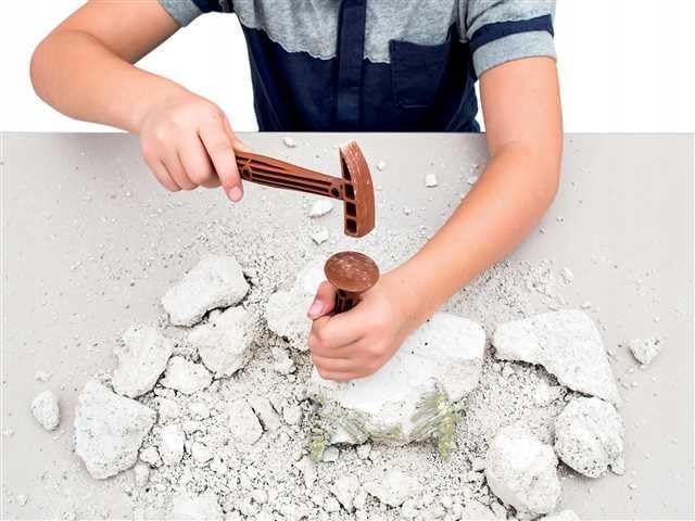 Zestaw zawiera młotek i dłuto, aby stać się prawdziwym paleontologiem.