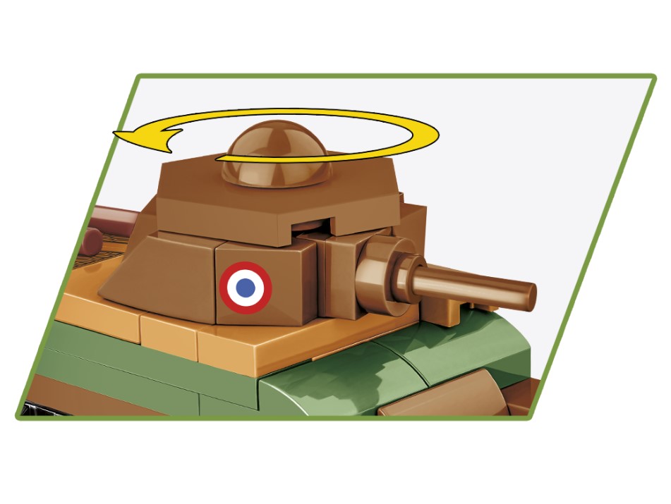 Mini model z klocków konstrukcyjnych COBI został zaprojektowany w skali 1:72 i składa się ze 99 wysokiej jakości elementów. Po zbudowaniu czołg ma 9 cm długości. Pomimo kompaktowego rozmiaru model zachował wszystkie najważniejsze cechy swojego historycznego pierwowzoru! Tego pojazdu nie można pomylić z żadnym innym! Na bokach wieży znajdują się nadruki z francuskimi oznaczeniami. Również kratki wentylacyjne to nadruk. Wieża czołgu jest ruchoma i można ją obracać.