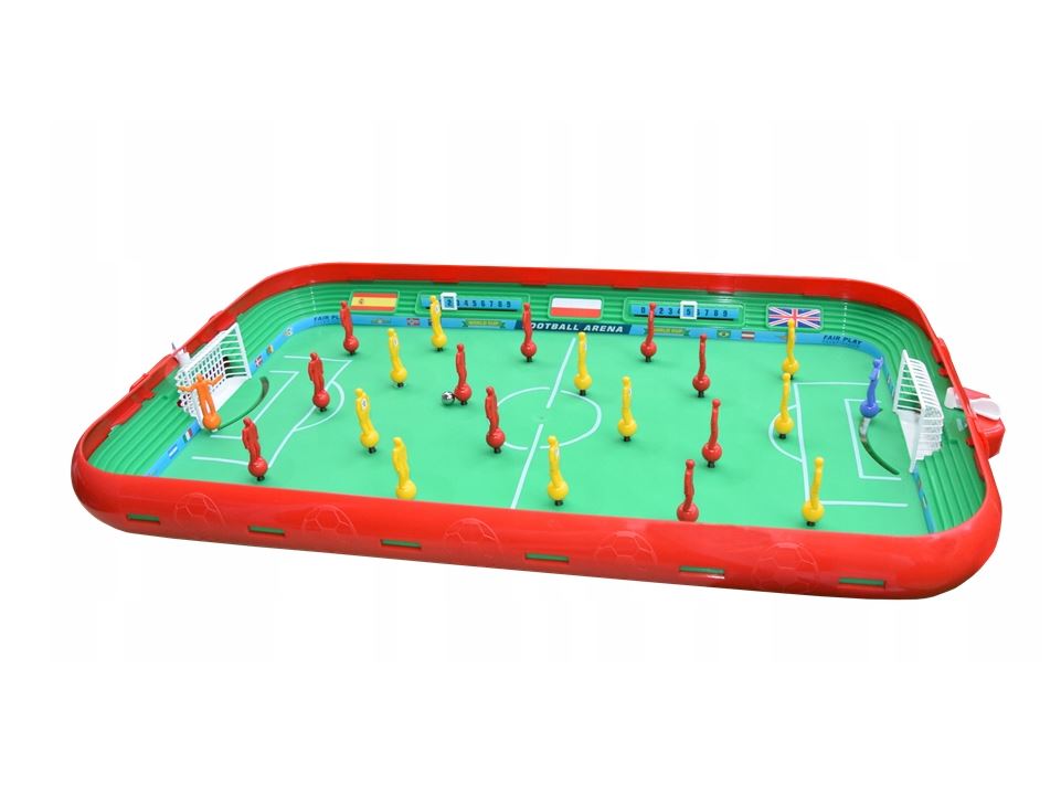 Arena Piłkarska to doskonały sposób na wielogodzinną rozrywkę dla dzieci! Piłkarzyki na sprężynach to rozrywka i zabawa - także dla dorosłych! W zestawie znajdują się dwie grające drużyny, czerwona i żółta. Każda drużyna ma plastikowe figurki na sprężynujących drążkach, którymi można łatwo i zwinnie manewrować, dzięki czemu maluchy mogą uczyć się strategii i czerpać radość z gry. W zestawie jest też plastikowy bramkarz, który broni każdej bramki.