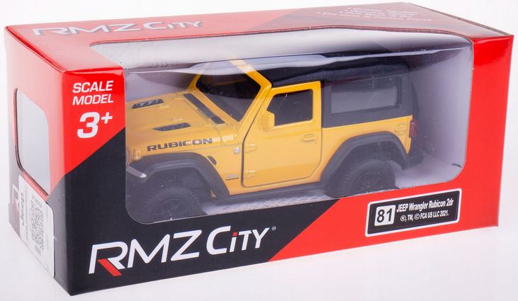 Model JEEP WRANGLER RUBICON 2DR w skali 1:32/39 wykonany został z metalu i plastiku na gumowych oponach. Pojazd posiada otwierane drzwi, przez które można zajrzeć do wnętrza. Model posiada napęd typu pull back, dzięki któremu możemy obserwować to wyjątkowe auto w ruchu. Pojazd charakteryzuje się znakomitą jakością i wiernością wykonania, pomalowany lakierem samochodowym.