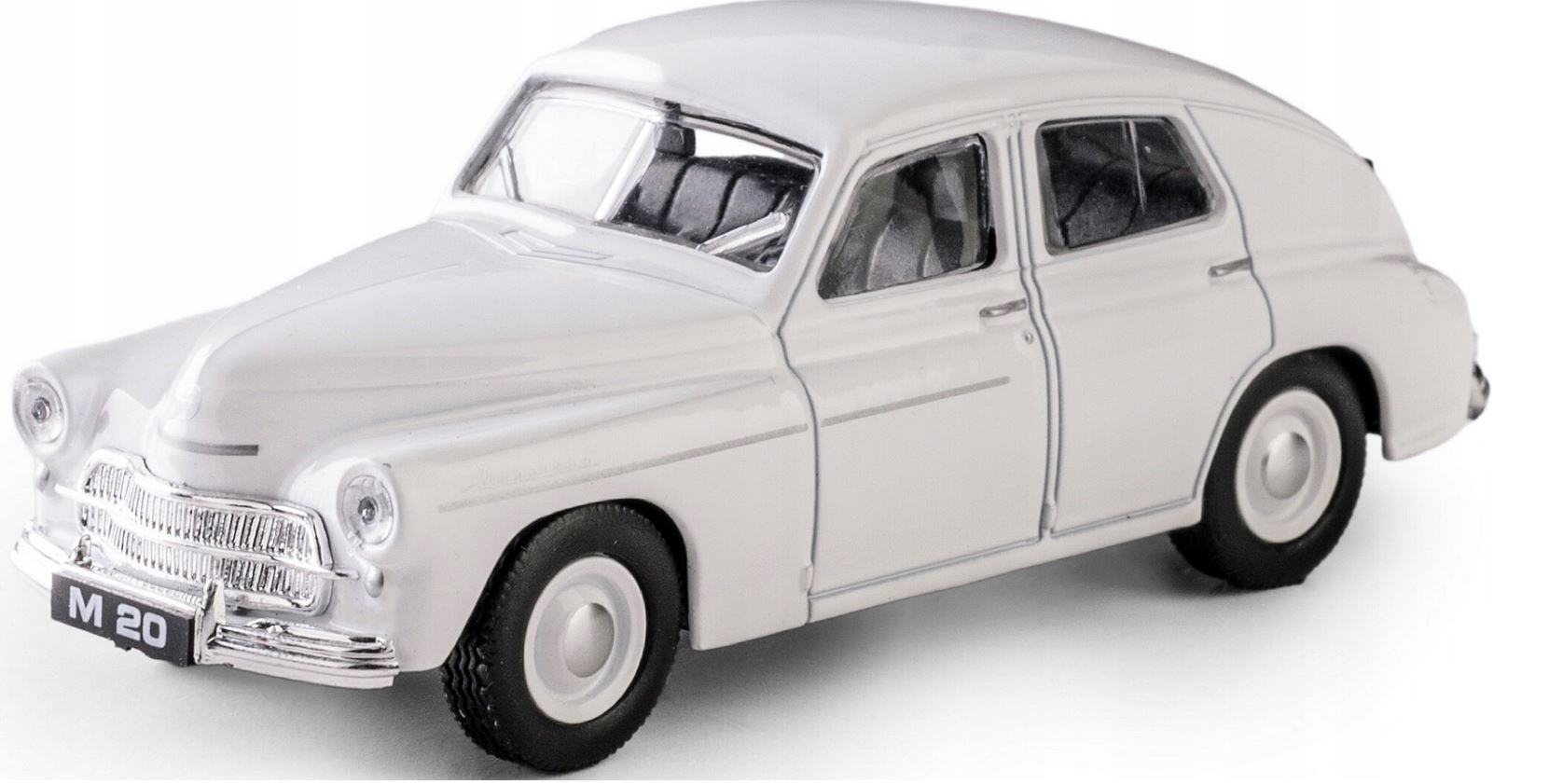 Pierwsza Warszawa M-20 zmontowana z części sprowadzonych z ZSRR zjechała z taśmy montażowej 6 listopada 1951 roku o godzinie 14:00. Początkowe plany zakładały produkcję na poziomie 25 000 sztuk rocznie, do końca roku 1951 powstało jednak jedynie 75 egzemplarzy. W początkowym okresie produkcji samochód montowany był z części radzieckich, dopiero 19 września 1953 roku zmontowano silnik M-20 w całości z części polskich. W 1954 roku rozpoczęto również eksport. Początkowo samochód trafiał do Chin, Rumunii, Albanii oraz Bułgarii. W oparciu o podzespoły dedykowane dla Warszawy skonstruowano także samochody dostawcze: Żuka, Nysę oraz Tarpana. Samochód metalowy Warszawa M20 1:43.Wykonany został z metalu i plastiku, posiada gumowe opony. Do pomalowania modelu został użyty nietoksyczny lakier samochodowy. Zabawa autkami rozwija wyobraźnię dziecka i wpływa pozytywnie na rozwój Twojego dziecka, a także daje wiele radości podczas zabawy.