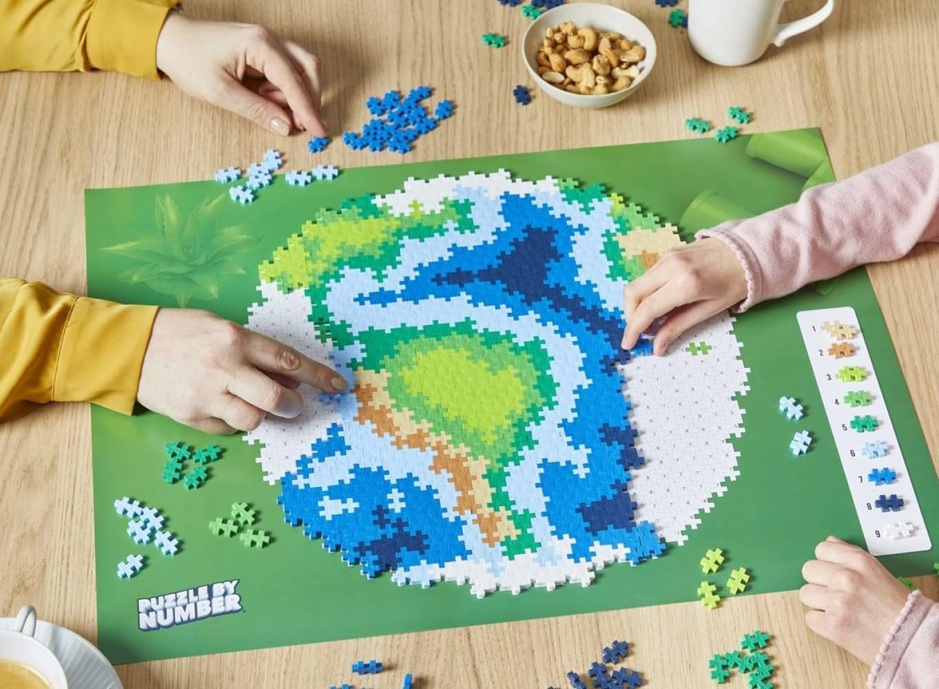 Puzzle by Number łączą wspaniałą zabawę z klockami Plus-Plus i edukacyjną aktywnością znaną z dzieciństwa. Dopasuj kolory i liczby, a następnie zbuduj swoją mozaikę! Zestaw zawiera 800 elementów, z których można stworzyć naszą planetę. Po zbudowaniu stanowi ona świetną dekorację.