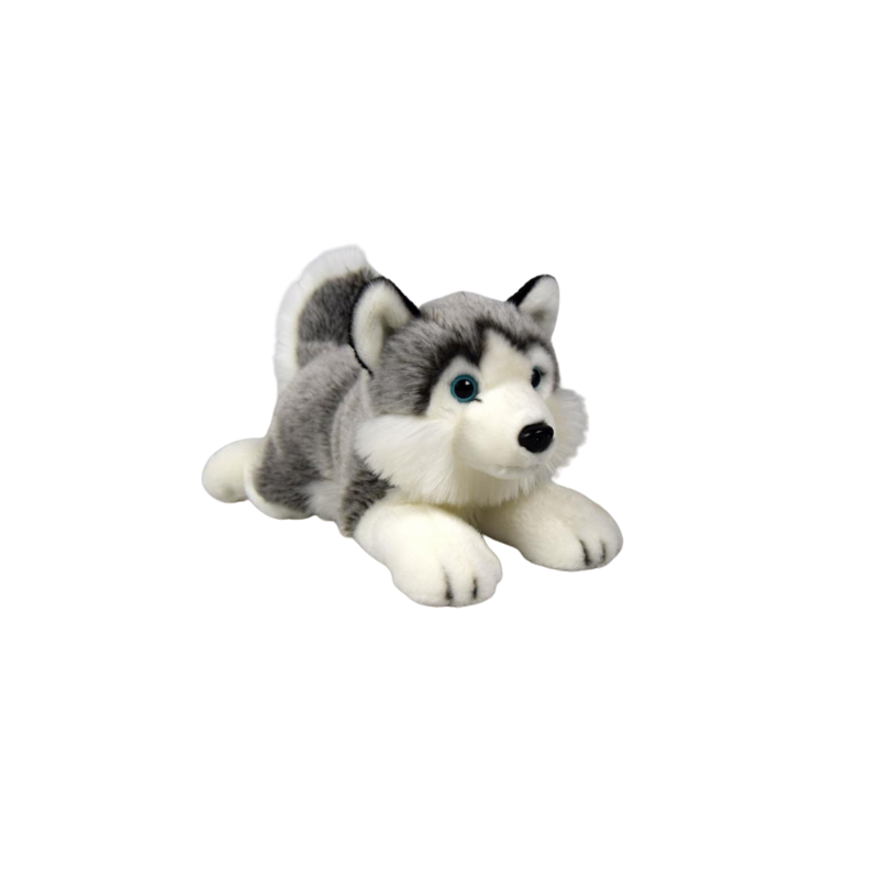 Uroczy Husky wykonany z miękkiego pluszu, zachwycający realistycznym wyglądem i dbałością o detale. Ten zwierzak to połączenie miękkości, uroku i wysokiej jakości wykonania.