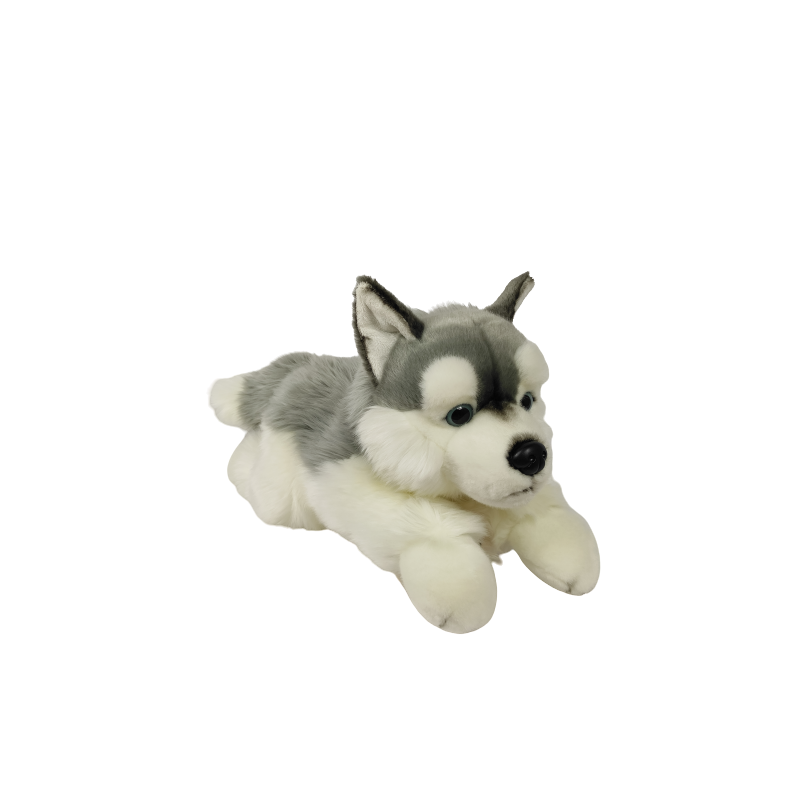 Uroczy Husky wykonany z miękkiego pluszu, zachwycający realistycznym wyglądem i dbałością o detale. Ten psiak to połączenie miękkości, uroku i wysokiej jakości wykonania.