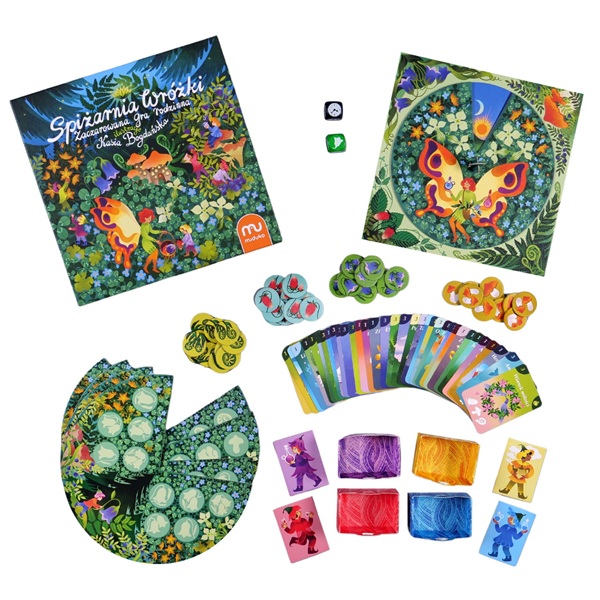 W skład zestawu wchodzi wszystko, czego potrzebujesz do zabawy: magiczny zegar, planszetki, żetony, koszyczki, karty receptur oraz kostki. Dzięki różnorodności elementów, gra zapewnia mnóstwo godzin radości i twórczego myślenia. Niezależnie od tego, czy wybierzesz wariant kooperacyjny, czy rywalizacyjny, „Spiżarnia wróżki” to gra, która łączy pokolenia i sprawia, że każdy wieczór staje się niezapomnianą przygodą.