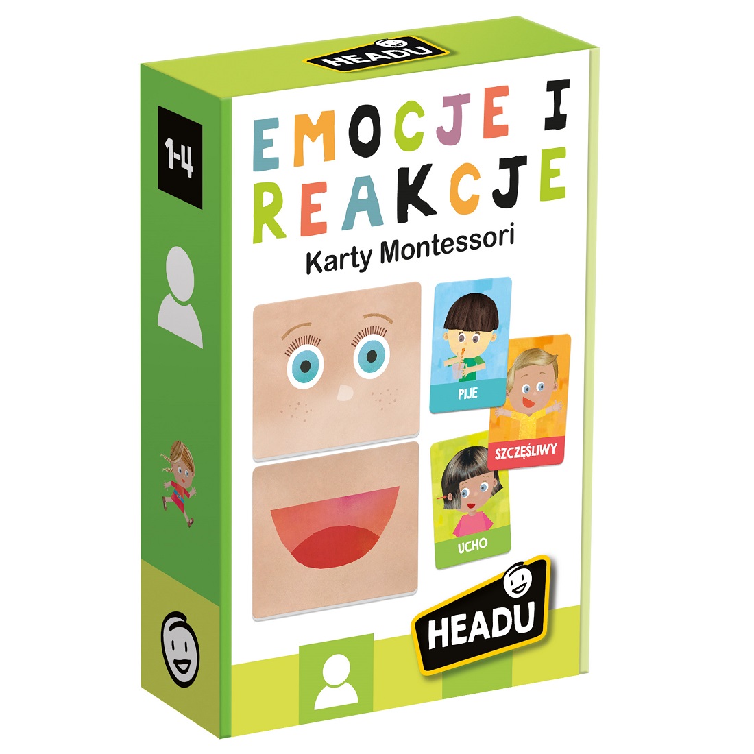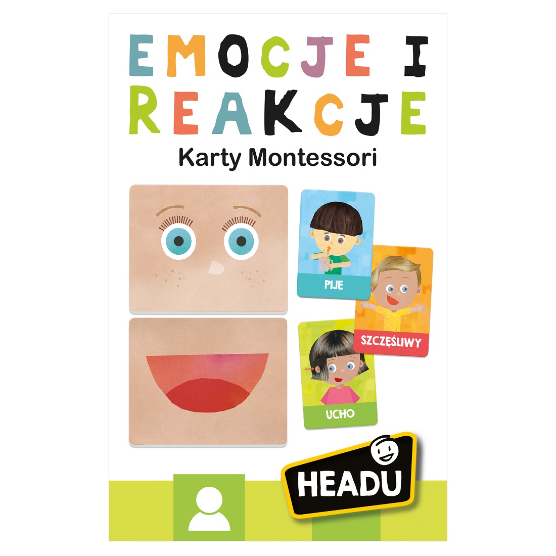 Od urodzenia dzieci demonstrują szeroki wachlarz emocji na twarzy, od ekscytacji, po zadowolenie czy ból. Od najmłodszych lat naśladują też zachowania rodziców, uczą się języka ciała i rozpoznawania uczuć i emocji. Pokaż dziecku i nazwij wskazane na kartach emocje, reakcje oraz części ciała! Karty Montessori dają wiele możliwości gry: od prostych zabaw dla najmłodszych dzieci (1-2 lata), które mogą uczyć się nazw, po bardziej skomplikowane, trudniejsze zadania dla 3-4 latków. Starszaki mają za zadanie łączenie kart emocji, reakcji i części ciała - dzięki temu kształtują umiejętności wnioskowania i opowiadania. Dodatkowo na odwrocie kart znajdują się obrazki, które przedstawiają mimikę twarzy, z których maluch może układać zabawne buźki i ćwiczyć poznane słowa!