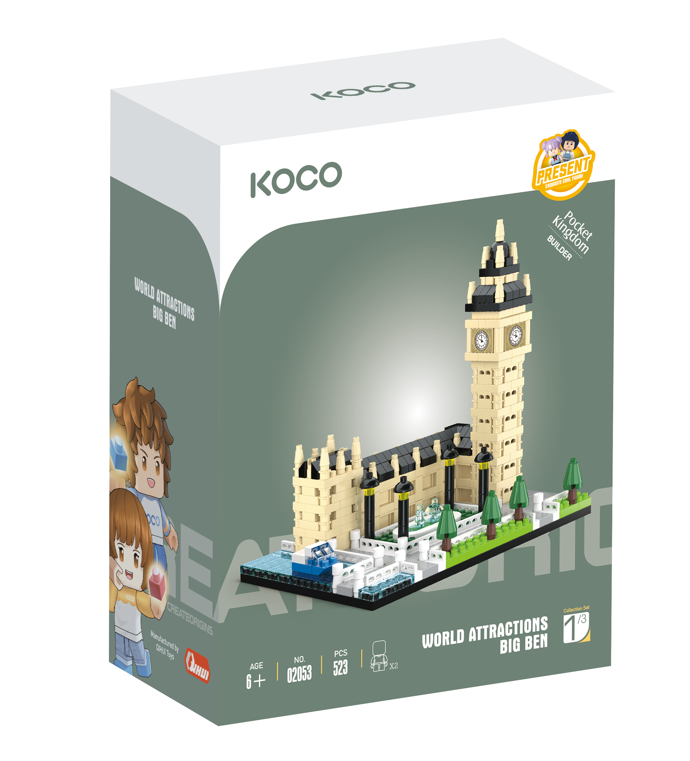 Klocki marki KOCO składające się z 523 elementów, przedstawiają londyńskiego Big Bena.