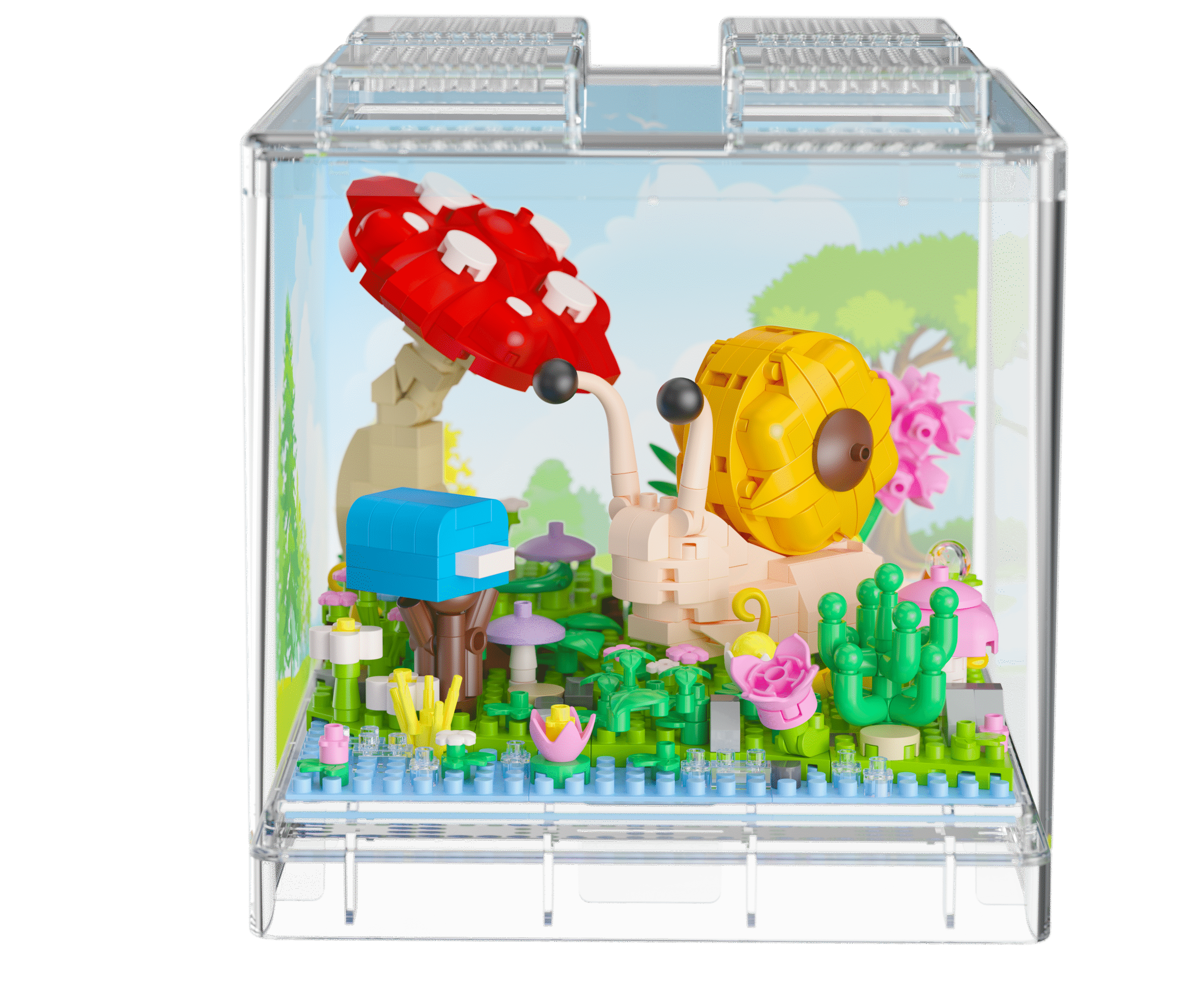 Klocki przedstawiają uroczą jesienną scenkę ze ślimakiem i czerwonym muchomorkiem. Zestaw składa się z 625 elementów.