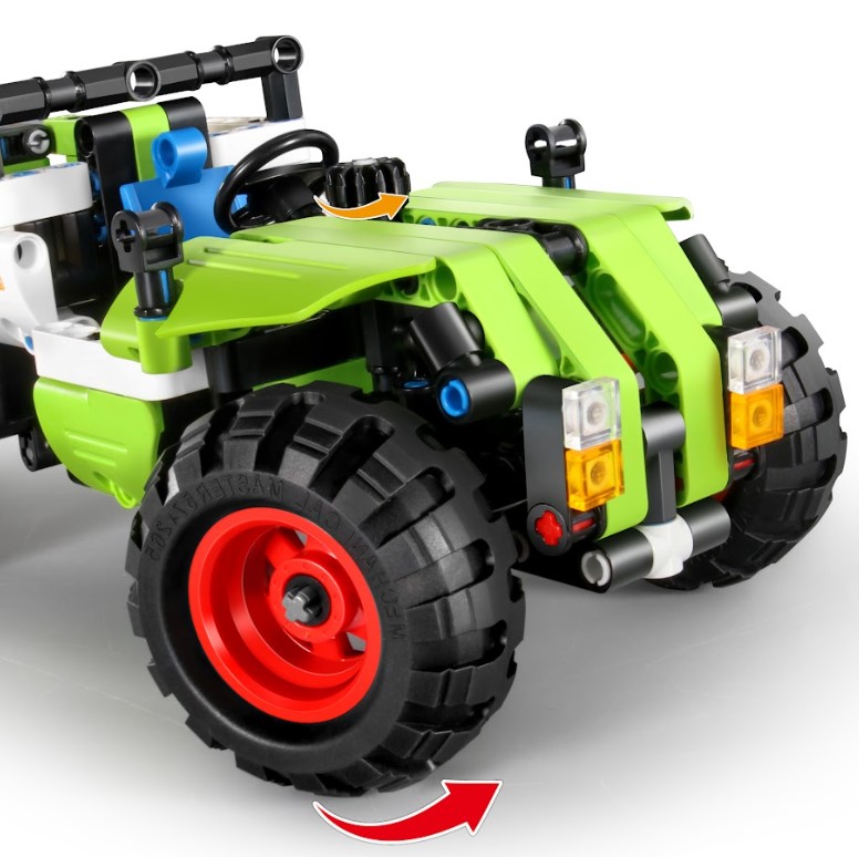 Klocki przedstawiają kombajn 2w1. Zachwyć się bardzo szczegółowym odtworzeniem kształtu kombajnu, zapewniając realistyczne i wciągające wrażenia z pracy na roli.