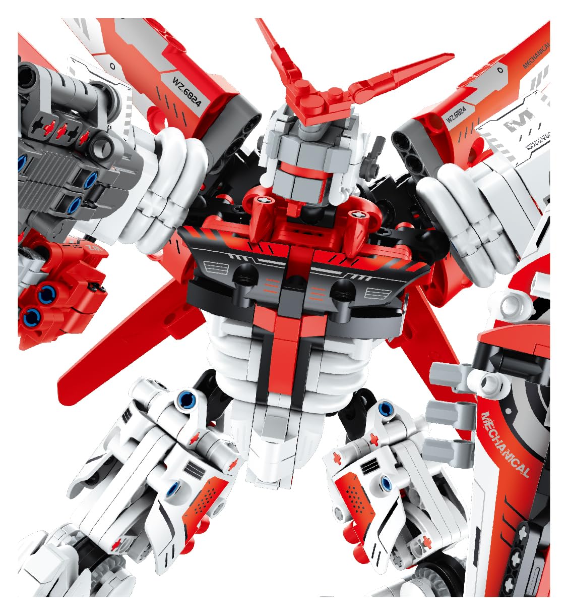 Klocki przedstawiają Mecha Wojownika w kolorze czerwonym z ruchomymi elementami. Zestaw składa się z 1100 elementów.