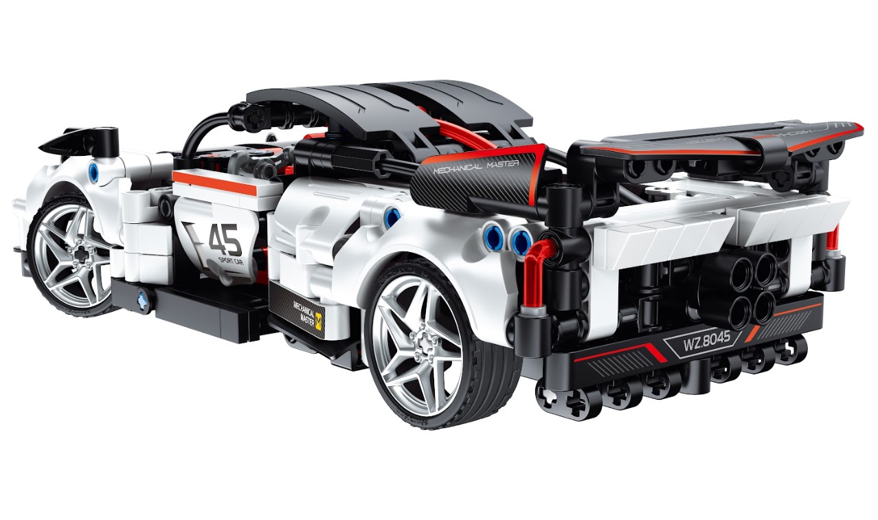 Klocki przedstawiają białą wyścigówkę, która po ułożeniu staje się pojazdem zdalnie sterowanym! Wystarczy sparować auto z pilotem znajdującym się w zestawie i można ruszać na wyścig!