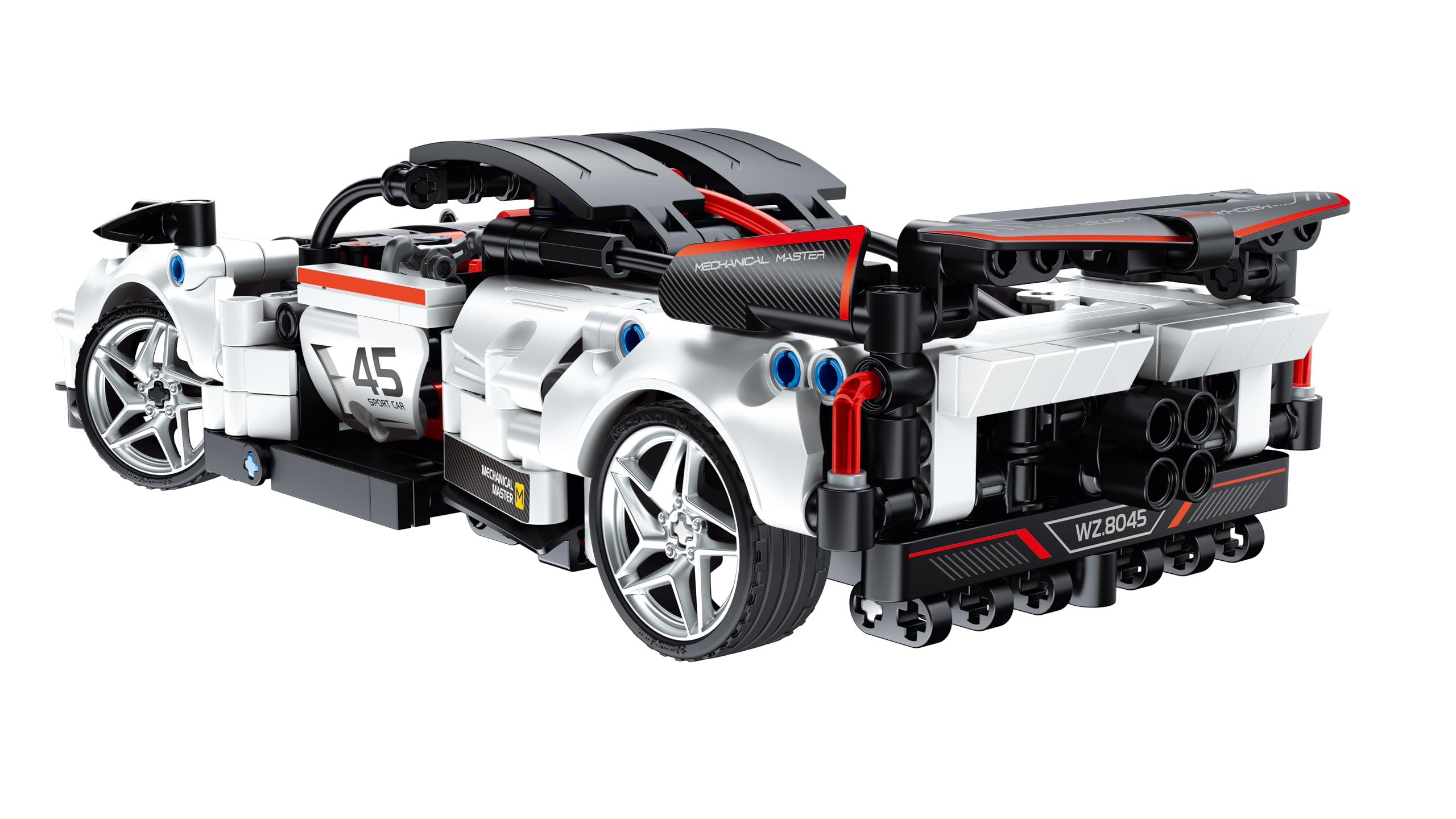 Klocki przedstawiają białą wyścigówkę, która po ułożeniu staje się pojazdem zdalnie sterowanym! Zestaw składa się z 476 elementów.