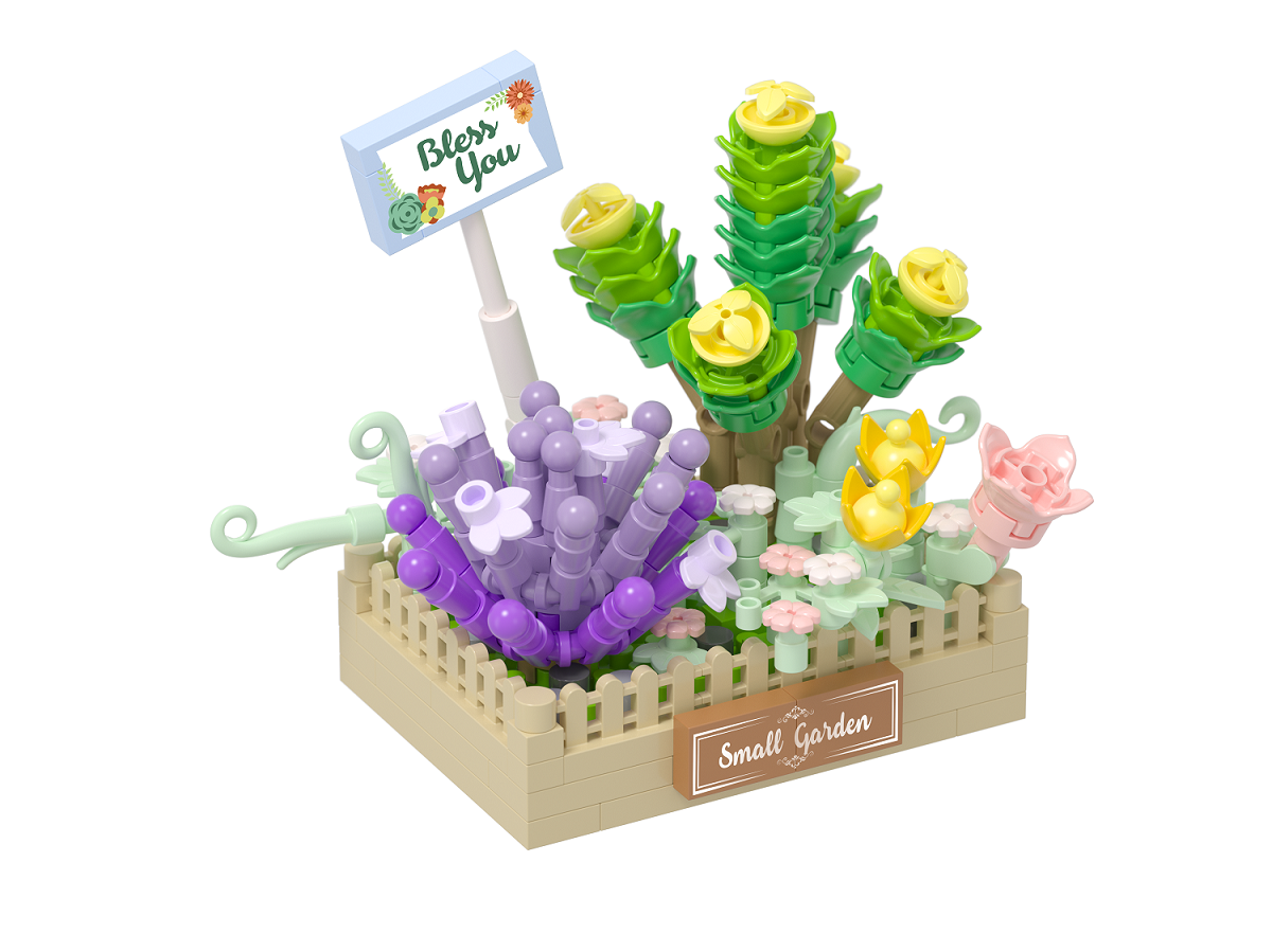 Klocki marki KOCO składające się z 232 elementów. Klocki przedstawiają kolorowe sukulenty w ozdobnej doniczce.