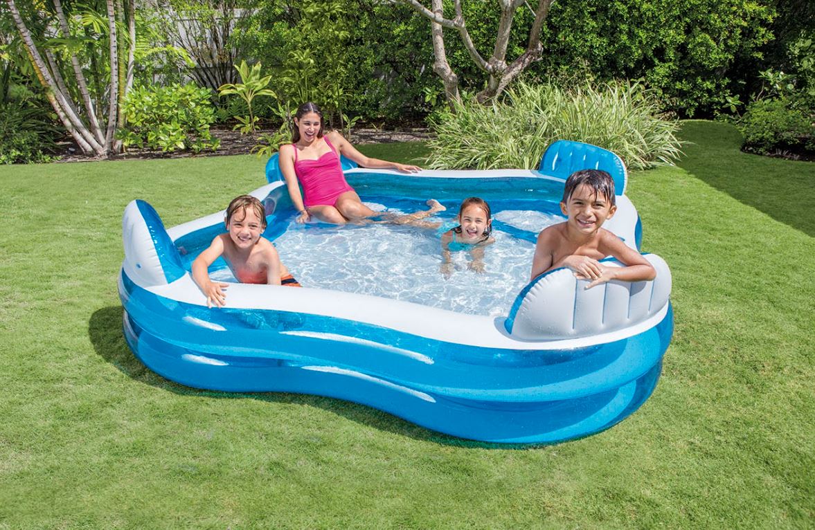 Zrelaksuj się w upalny dzień w czteroosobowym basenie razem z rodziną lub znajomymi. Pojemność basenu to 990l, wyposażony został w 4 wygodne siedziska z oparciem oraz 2 holdery na napoje. Aby łatwo było spuścić wodę, w basenie umieszczono korek spustowy. Wymiary basenu wynoszą 229 x 229 x 66cm, do zestawu dołączono łatkę naprawczą.
