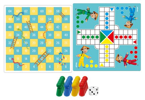 Zestaw „Węże i Drabiny” + `Chińczyk” to dwie klasyczne gry planszowe w jednym pudełku. W zestawie: plansza dwustronna, 16 pionków, kostka i instrukcja.