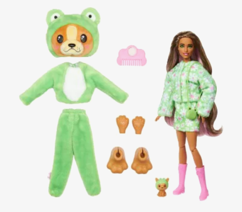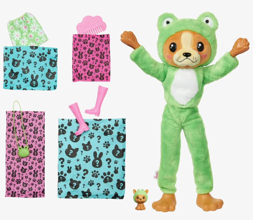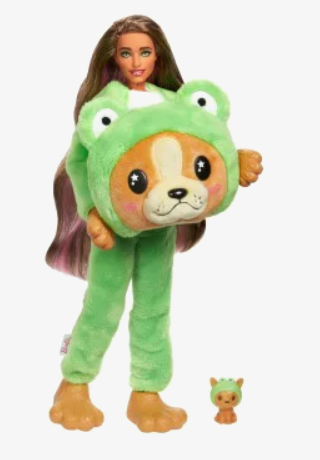 Barbie Cutie Reveal: Piesek-Żaba to niesamowity zestaw, który oferuje dwie różne stylizacje! Lalka ukryta w miękkim, futrzanym stroju kryje w sobie mnóstwo niespodzianek. W zestawie znajduje się 10 akcesoriów, w tym mini zwierzątko. To idealny prezent dla małych miłośniczek mody.