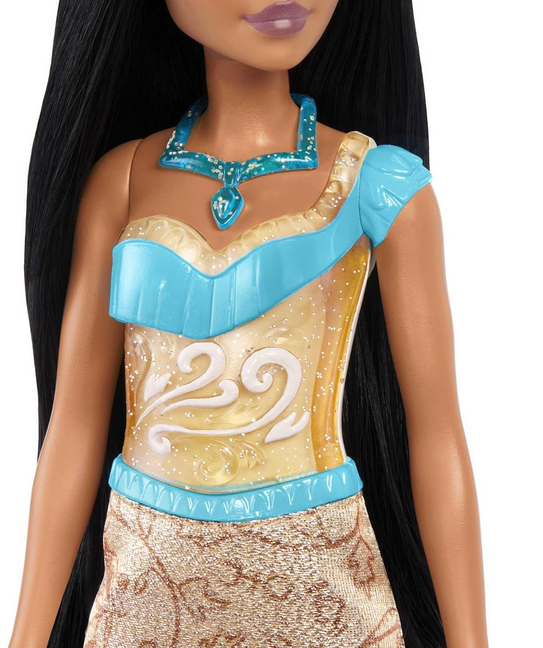 Poznaj odważną Pocahontas z serii Disney Princess! Lalka w stroju inspirowanym filmem, z pięknymi detalami i dopracowanym makijażem. Idealna do odgrywania scen z bajki lub tworzenia własnych przygód.