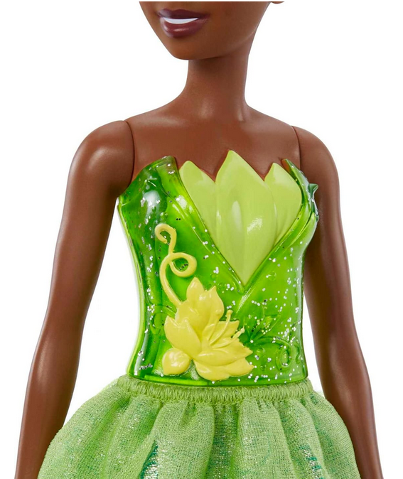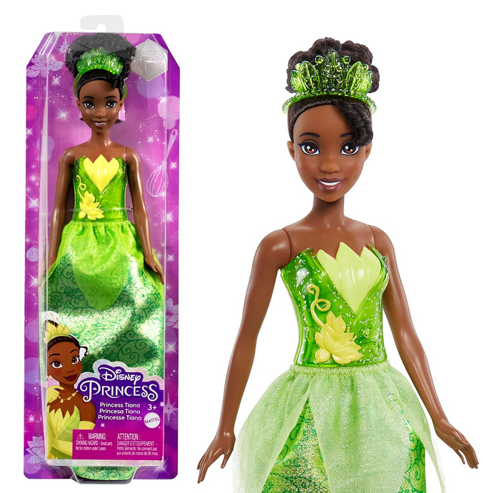Lalka DISNEY Princess Tiana to urocza księżniczka w pięknej, zielonej sukni. Idealna dla każdej miłośniczki bajek Disneya, przeniesie Cię do świata baśni i magii. Tiana jest gotowa na niezapomniane przygody! Doskonały prezent dla każdej dziewczynki.