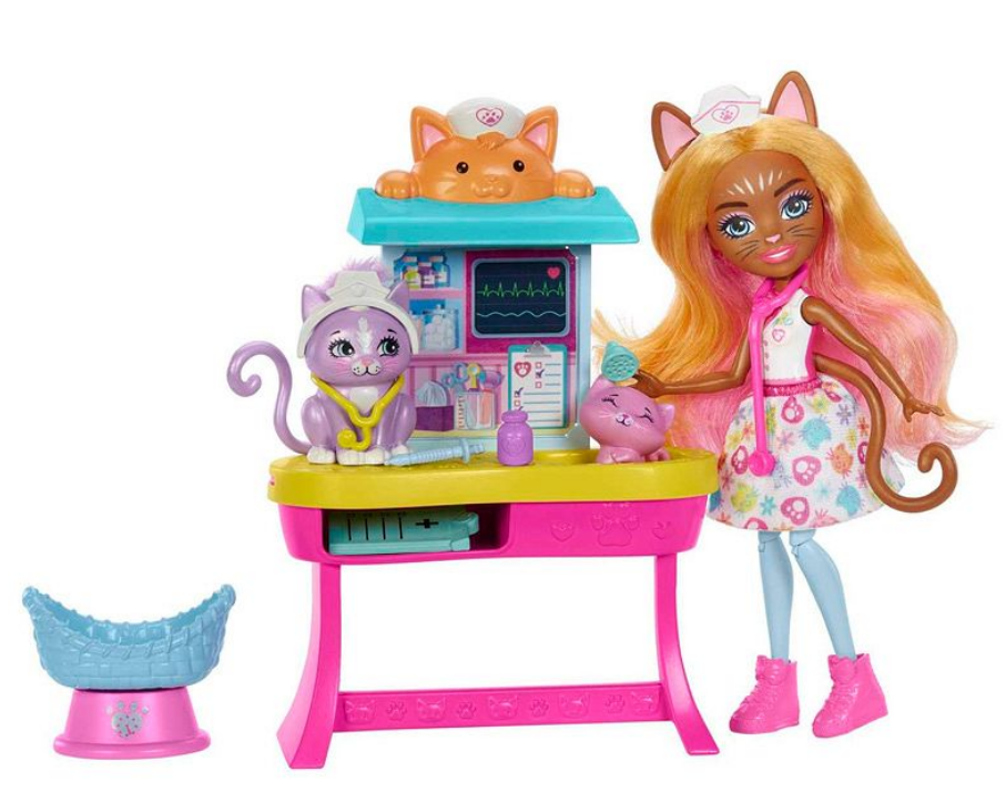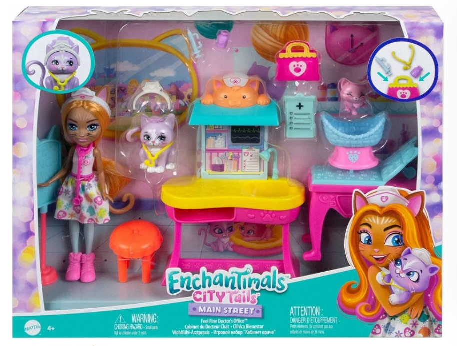 Zestaw "Wizyta u lekarza z kotkiem" z serii Enchantimals to idealna zabawa dla małych miłośników zwierząt. W zestawie znajduje się figurka lekarza-kociaka, kotek oraz wiele akcesoriów do badania i opieki nad zwierzątkiem, takich jak stół operacyjny, waga i torba lekarska. To doskonała okazja do rozwijania wyobraźni, empatii i kreatywności u dzieci. Zabawka przeznaczona dla dzieci od 4 lat.