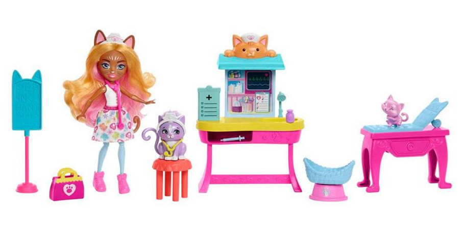Zestaw „Wizyta u lekarza z kotkiem” z serii Enchantimals zawiera figurkę lekarza, kotka i akcesoria do zabawy. Idealny dla dzieci powyżej 4 roku życia, rozwija kreatywność i empatię.