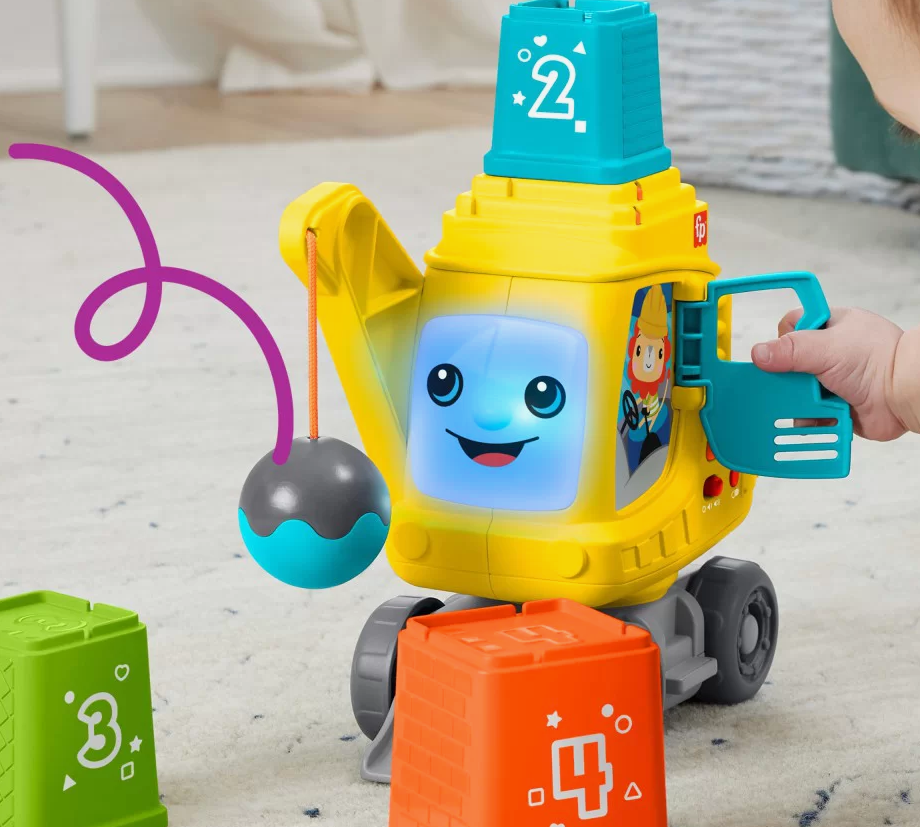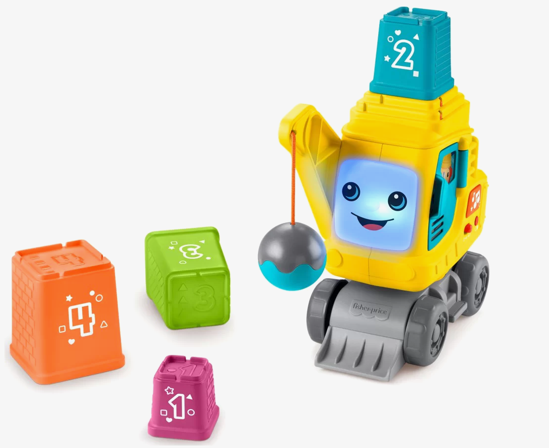 Wesoły dźwig Układaj i Licz to interaktywna zabawka, która uczy dzieci liczenia i budowania. Zabawny dźwig z klockami rozwija zdolności manualne i koordynację. Idealny dla dzieci 9miesiąca.
