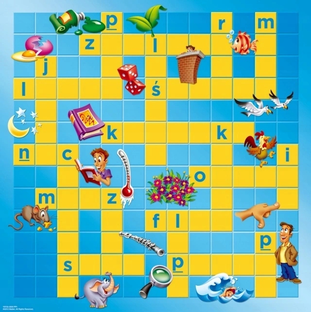 Dwie wspaniałe gry słowne w jednej – dla młodszych graczy! W tej wersji gra w Scrabble nie jest już za trudna dla dzieci i pomaga im zwiększyć zasób słownictwa, nauczyć się nowych słów i nabrać sprawności w posługiwaniu się językiem. W pierwszej grze, „Słowa i obrazki”, dzieci łączą litery na planszy. Dzięki kolorowym grafikom i wyrazom odpowiednim dla dzieci mały gracz z radością będzie dopasowywać płytki z literami do słów na planszy. Za ułożenie wyrazu otrzymuje się żeton. Gdy wszystkie płytki znajdą się na planszy, wygrywa gracz z największą liczbą żetonów! Odwróć planszę, aby spróbować swoich sił w zaawansowanej rozgrywce – w ten sposób gra „rośnie” wraz z dzieckiem! W wersji „Kolory i litery” starsze dzieci same układają słowa i próbują wyłożyć literki na kolorowe premiowe pola. W zestawie: dwustronna plansza, 84 płytki z literami, 30 żetonów, woreczek, instrukcja. Od 2 do 4 graczy. Wiek: od 6 lat
