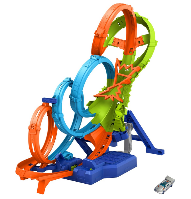Poczwórna pętla kraks to ekscytujący zestaw Hot Wheels z czterema pętlami i strefami kolizji! Idealny dla małych fanów prędkości i akrobacji.